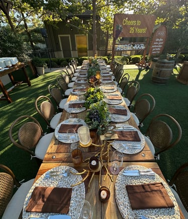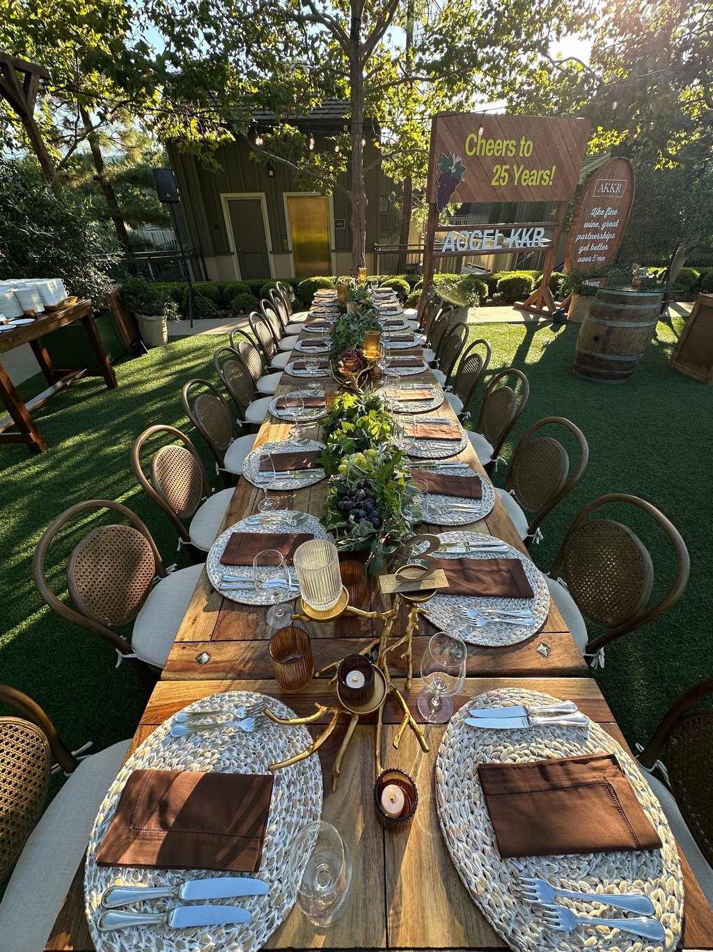 Concept-driven design and styling for an intimate partner dinner, inspired by Napa Valley's Fall Harvest.