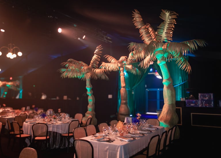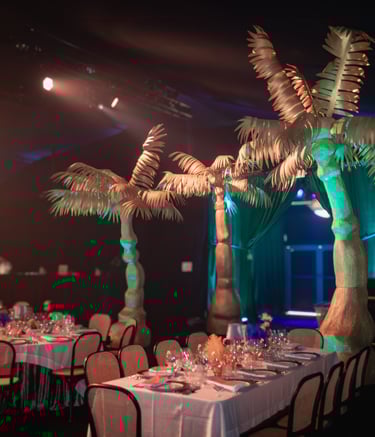 Design and styling for a large-scale nonprofit gala, creating distinct themed environments inspired by New Orleans and classic jazz club culture.