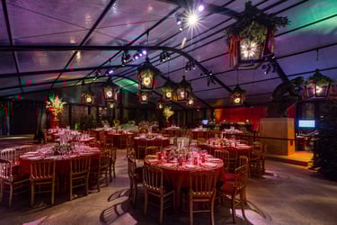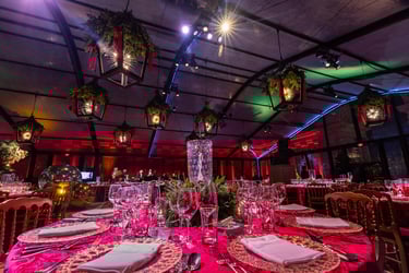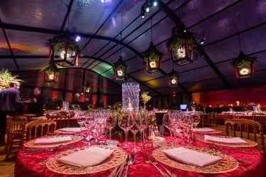 Scope included curated table settings and tent atmosphere design, working closely with a contracted lighting vendor to shape the overall mood and visual tone of the space. Working as the sole styling team, the design emphasized subtle detail and spatial harmony, allowing the environment to feel celebratory without leaning seasonal.